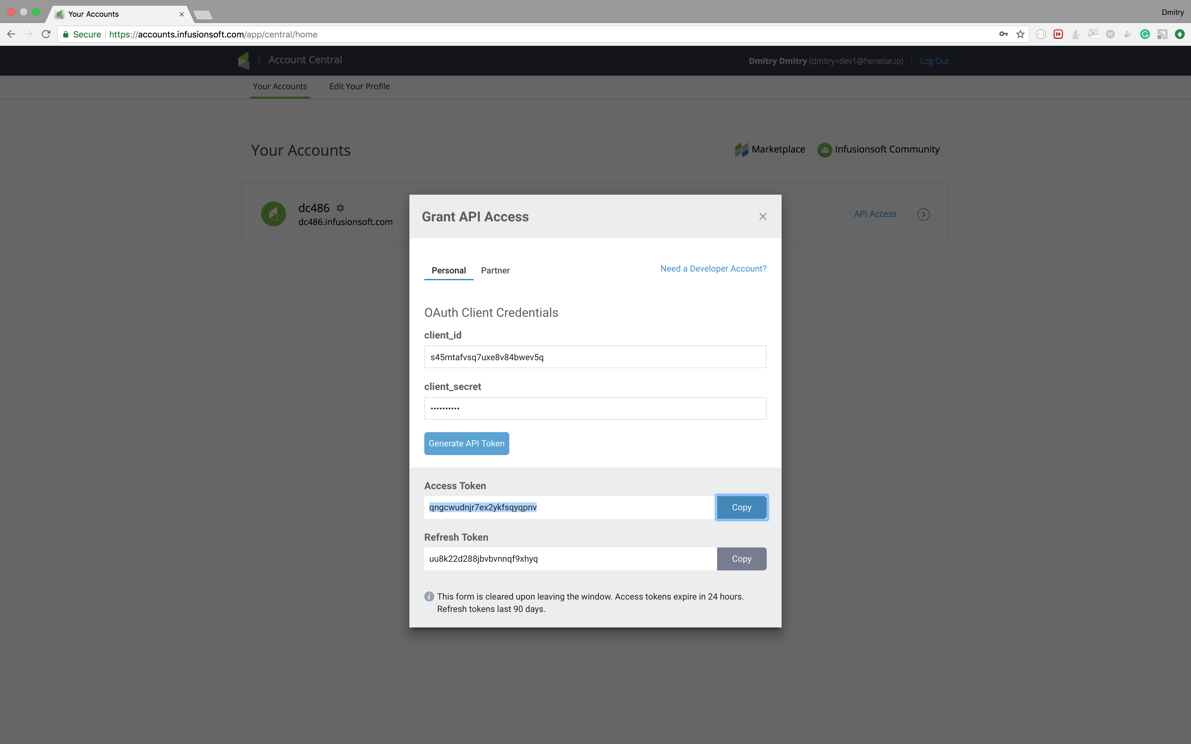 Infusionsoft API and create a new contact. We only need to retrieve an API token
