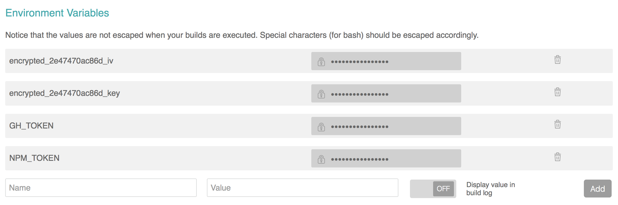 tokens manually. Store them somewhere safe and add GH_TOKEN and NPM_TOKEN on