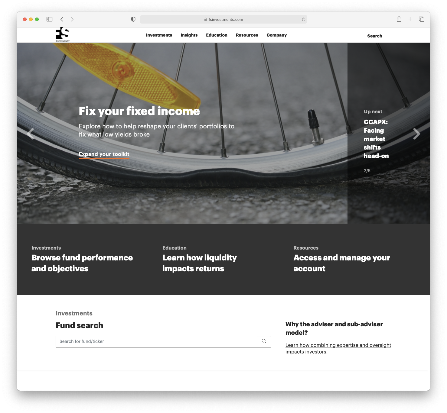 FS Investments is a leading asset manager used by individuals, financial professionals, and institutions, with the mission to design better portfolios. The firm provides access to alternative sources of income and growth, while focusing on setting industry standards for investor protection, education, and transparency. FS’ thoughtfully designed solutions combine differentiated strategies, top institutional managers, and investment structures that address investors’ needs. It manages a growing suite of funds designed for financial advisors, individuals, and institutions to achieve a variety of financial goals.